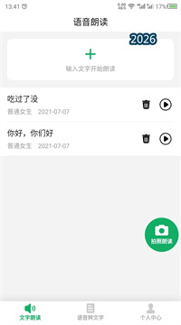 1、输入文字立刻播音,AI男声女声随便挑,语速快慢你说了算,还能保存成音频反复听;