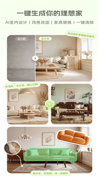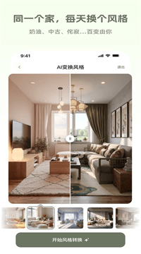 1、上传一张实拍图,选奶油原木、侘寂风、新中式等任意热门风格,AI秒出4K级效果图,地板纹理、光影反射跟真拍一样,毛坯房也能直接看精装效果。