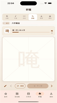 1、抄经模块自带《心经》《金刚经》等十几部经典,手指跟着笔画写,写完自动统计遍数和字数,像游戏升级一样把焦躁值归零,我半夜三点睡不着爬起来抄,写完心率真的降了。