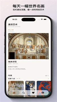 1、每天零点自动更新一幅作品,点进去就是全屏高清,双指放大能看见梵高厚到凸起的油彩,也能看清维米尔珍珠耳环上的反光,旁边配百来字小短文,说画家当时多倒霉或谈恋爱,读下来像刷朋友圈。