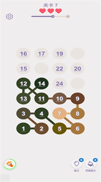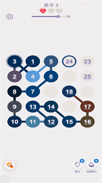 3、关卡节奏按“2易1难”循环,困难关把数字藏在棋盘格或彩虹渐变里,眼力与逻辑双考验却不卡死,提示键三秒就能怼出下一节点