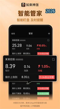 1、智能管家自定义预警:用户可设置个性化提醒条件(如股价突破、涨跌幅阈值),系统在盘中实时触发提醒,帮助投资者及时捕捉交易时机。