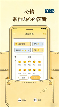 2、丰富的情绪可视化工具:内置多种趣味表情符号,用于快速标记当日心情状态,让情绪记录比纯文字更直观、更有温度。