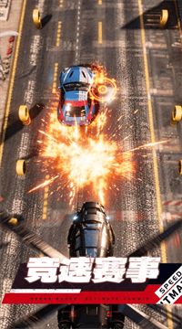 2、赛道上每隔一段距离就会随机出现道具箱,捡起来可以拿到油桶、氮气加速或者电磁脉冲。比如你被对手卡在后面,丢一个油桶能让他打滑减速;氮气一开,车子会猛地往前窜一小段,用好了能在终点前完成绝杀。