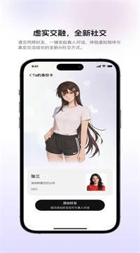 3、虚实交融社交:与其他用户交换数字人身份卡,一键发起真人对话,既享受虚拟陪伴的温暖,又能结识真实世界的同频朋友。
