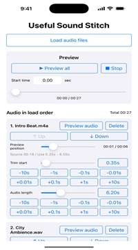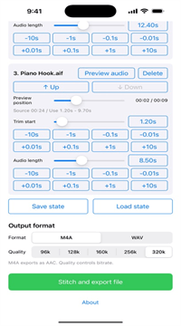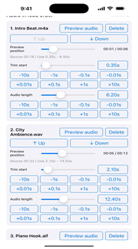 3、编辑的时候随时都能听效果,还能调换文件顺序,通过滑块精准定位,确保最终成品听起来完美无瑕。