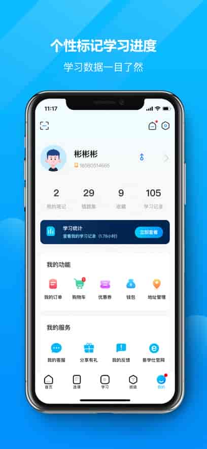 2、个性标记学习进度,学习数据一目了然,做到不落一章。