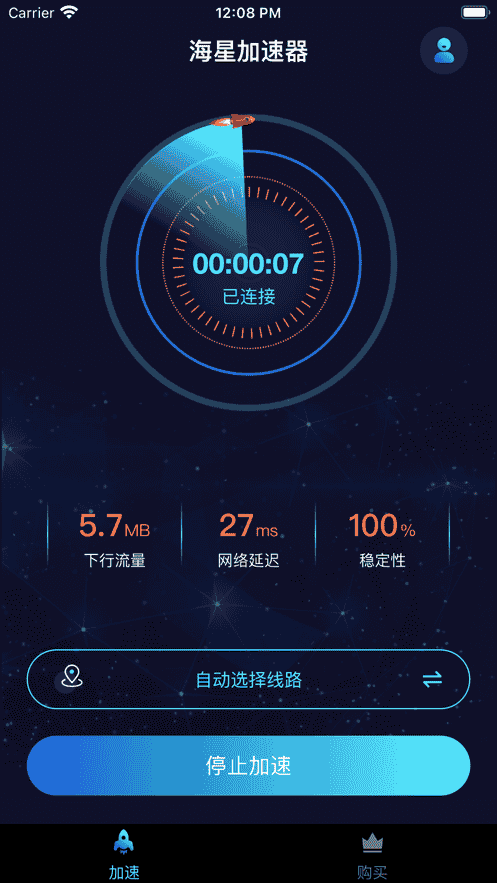 海星加速器App,专门针对中国用户提供国际网络线路优化加速,提供简单的一键加速,无需选择游戏、视频音乐等软件,并对海外华人畅听国内视频音乐等进行加速优化。