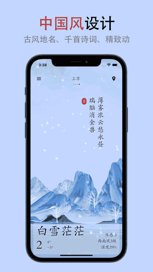 7、特色中国风界面,上百首诗词场景,知天气,更学知识。