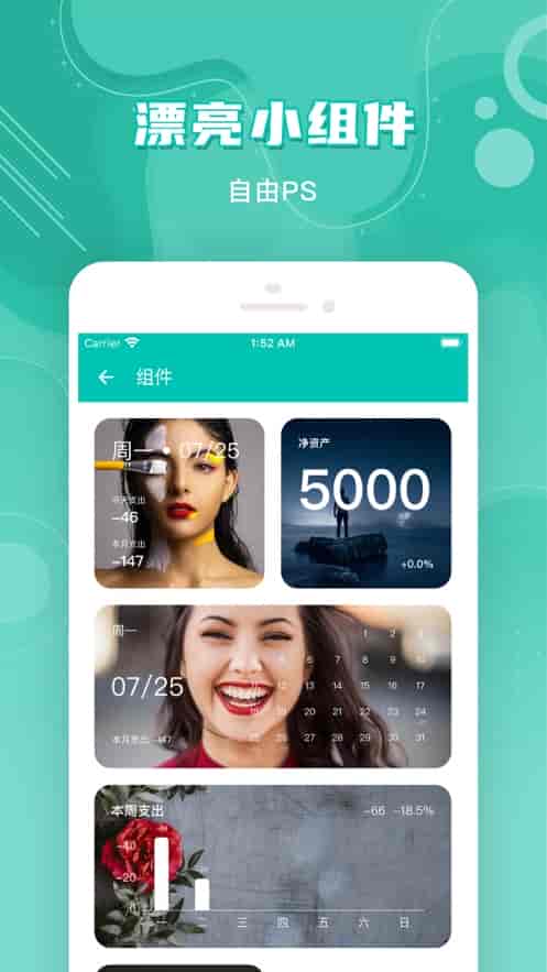 5、记账也要美美的,你的至美选择。漂亮小组件,自由PS。