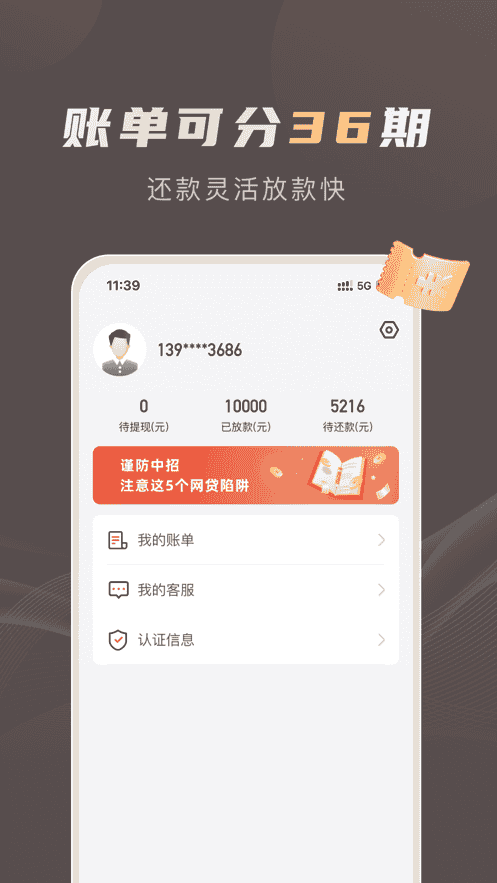 3、账单可分36期,还款灵活放款快。年化利息低,息费透明。
