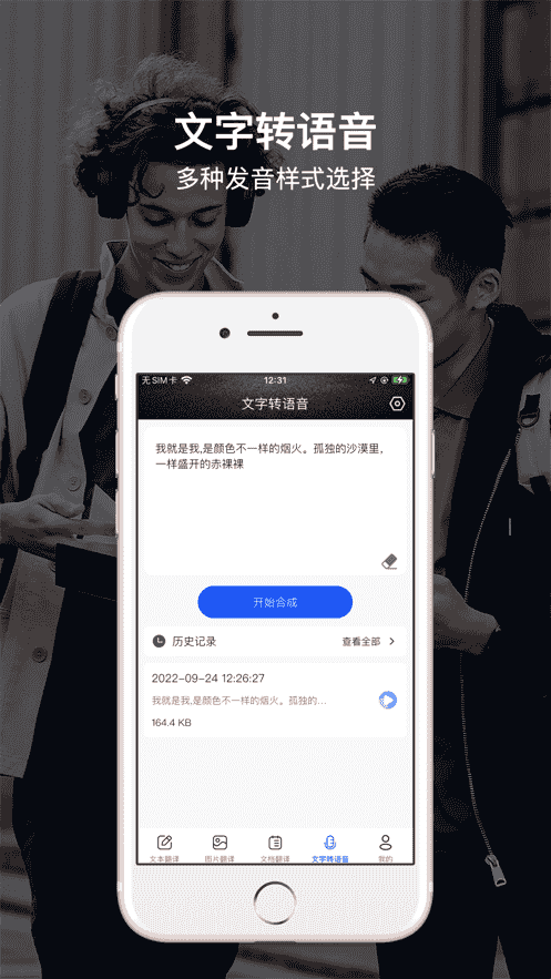 4、文字转语音,输入文字获得语音翻译。