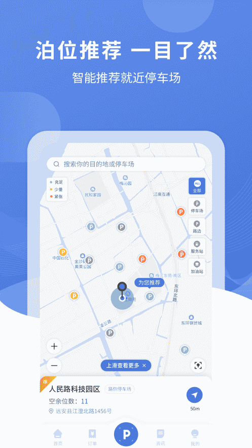 2、泊位推荐,一目了然,智能推荐就近停车场。