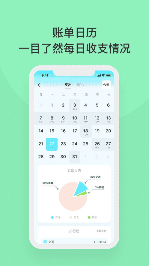 3、消费趋势功能,一目了然的图表,帮你快速分析消费情况。