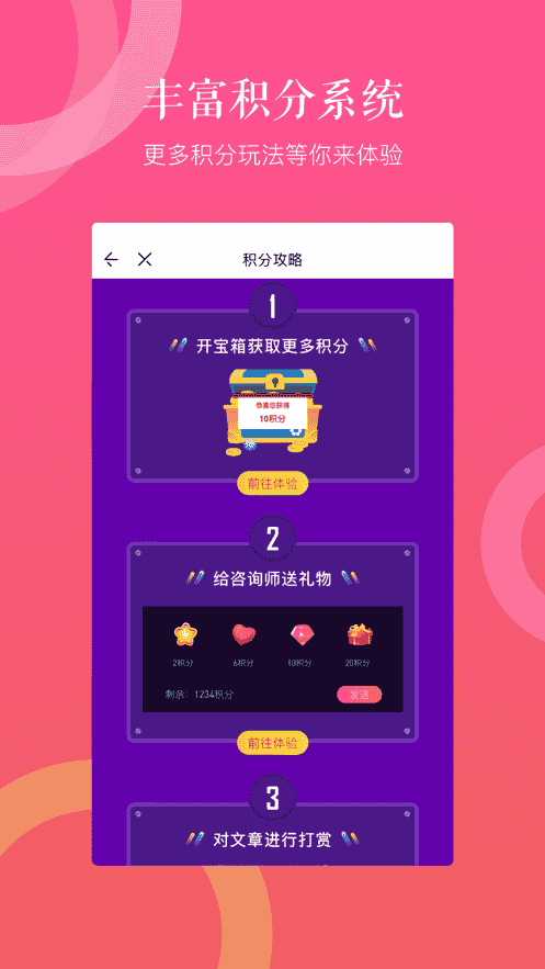 4、丰富的积分系统,更多积分玩法等你来体验。