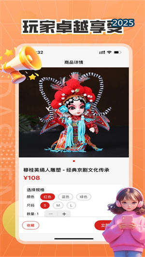真玩戏仔App建立多维分类导航体系,按行当、剧目、艺术家等标签精准筛选藏品。高清三维展示功能支持360度旋转查看,细节放大镜工具可观察服饰纹样和面部表情。限量发售系统管理稀有款式的预售和抢购,价格走势图表显示藏品市场价值变化。用户可通过心愿单功能收藏关注商品,设置降价提醒并在库存紧张时接收推送通知。