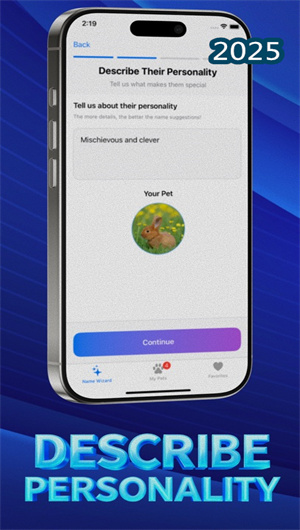 采用精美滑动界面设计,用户可通过右滑保存功能收藏心仪名字,使用左滑跳过操作排除不合适的选项,逐步构建个性化名字收藏夹。每个名字以精美卡片形式呈现,配合迷人背景故事详细阐释命名与宠物个性的契合点,使选择过程既直观又充满乐趣,大幅提升用户参与度。