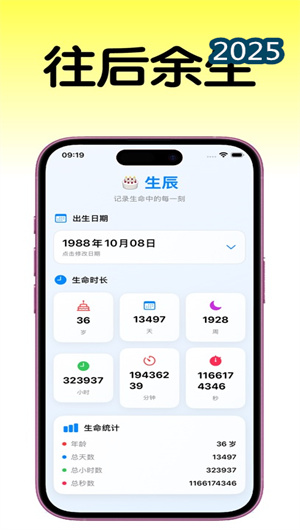 生辰App提供专业的生日专属海报生成功能,可以将精算出的年龄数据、已度天数等关键信息,结合优雅的版式设计转化为可分享的图片素材。一键分享引擎支持快速将生日海报发送到主流社交平台,既可用于记录个人成长节点,也能用于传递生日祝福。时间轴展示功能还能以图表形式呈现生命中的重要时间节点,让用户直观感受时间轨迹。