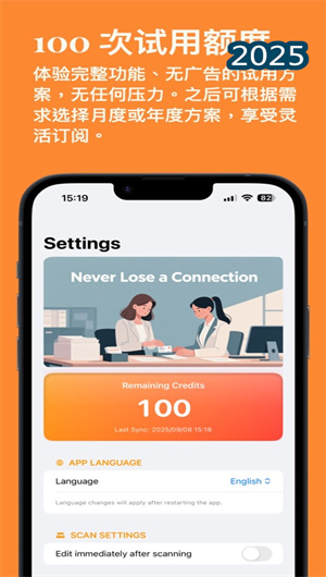 玫瑰名片王提供100次试用额度,让用户能够完整体验所有核心功能而不受广告干扰,充分测试应用的识别准确度和管理效率。试用期满后,用户可以根据实际使用需求选择月度或年度订阅方案,享受持续的功能更新和技术支持。试用数据无缝迁移功能确保用户在订阅后能够继续使用试用期间积累的所有名片数据,实现平滑过渡。