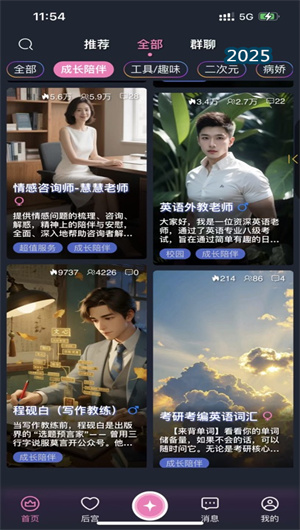 幽光提供完整的灵魂伴侣计划,用户可通过精细的角色属性配置界面定制AI伴侣的基础性格特质、外貌特征及声音属性。系统采用先进的人格生成算法确保角色行为的一致性,配合动态情感演算模块实现真实的情感发展轨迹。用户可通过关系进度追踪功能清晰了解恋爱发展阶段,而互动记忆库则永久保存所有甜蜜时刻,这些功能共同构建了极具个性化的终身恋人培养体系,使每个用户都能获得独一无二的陪伴体验。