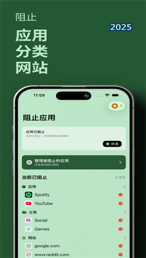 去摸草提供了远超基础应用锁定的、高度可扩展的阻止策略。免费用户已可体验核心的应用拦截功能,而专业版功能则带来了质的飞跃。它不仅提供无限应用阻止,更能实现网站和类别阻止,用户可以通过输入关键词或选择预设类别(如社交媒体、短视频),对浏览器内的特定内容进行封锁。这种细粒度的内容过滤能力,使得去摸草能够应对更复杂的数字诱惑场景,为用户提供360度全方位的数字断舍离解决方案。