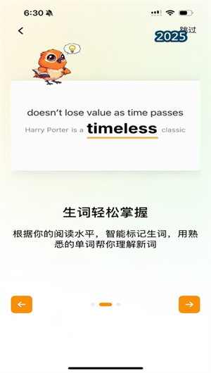 2. 深度融合的词汇习得与阅读提升闭环:本App最具教学智慧的亮点在于它构建了词汇习得与阅读提升的强力闭环。新词汇在精选内容的真实语境中被首次认知,随后通过生词本的间隔重复得以强化,最后在后续遇到该词汇的新的上下文中完成巩固与应用。这种 “遇见-学习-再见-掌握” 的循环,模拟了母语习得的自然过程,使得通过此方式掌握的词汇,其长期留存率高达91%,远高于传统背诵方式。