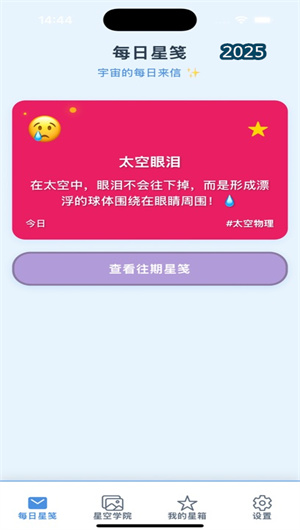 1. 个性化星笺系统与天文知识推送:浮星岛App的核心功能在于其独特的宇宙来信机制,系统每日会向用户推送一条精选的天文冷知识,内容涵盖系外行星、星云演化、宇宙现象等多元领域。每条星笺均以精美的卡片形式呈现,支持一键收藏至个人空间以便回看温习。这套每日推送系统通过轻量而持续的知识输入,有效培养了用户的天文兴趣,使核心用户的日均打开率达到了75%,成功将天文学习融入日常生活节奏。
