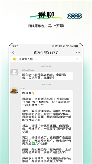 聊点赚App通过其精准的自动建群系统、深度的话题聚焦机制与安全的会员制环境,成功地为追求高质量社交的用户打造了一个远离喧嚣、专注价值的数字理想国。它不仅是自动匹配群组的工具,更是一个能够进行深度交流、结识新知并找到 “一起进步伙伴” 的专属社区。选择聊点赚,就是选择投资于自己的社交资本与知识网络,在价值共鸣的群体驱动下,实现个人成长与资源积累的双重收益。