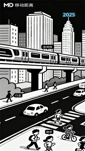 3. 无压力目标体系与生活仪式感营造:移动距离App摒弃了传统健康应用那种充满竞争和压力的目标设定。它不设定必须完成的每日里程目标,也不进行好友排名。它的价值在于忠实地记录人生远行,无论是日常通勤的琐碎,还是跨越城市的壮游,都被平等地视作人生的一部分。用户可以在年终回顾时,看到自己一年来走过的总距离,这种 “用距离丈量” 的仪式感,赋予了平凡生活以史诗般的厚度。