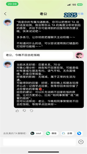 2. 前瞻性对话预演与沟通风险洞察:本App最具创新性的功能是其独家对话预演。在发送重要信息前,用户可启动此功能,系统会基于对对方心理的模拟,预测消息可能引发的多种反应及情绪变化,并给出修改建议。这种 “提前洞察” 的能力,让用户能够优化表达方式,确保每句话都说得恰到好处,从源头上告别因考虑不周而导致的尴尬和误解,仿佛拥有一位随时在侧的陪伴搭子进行沙盘推演。