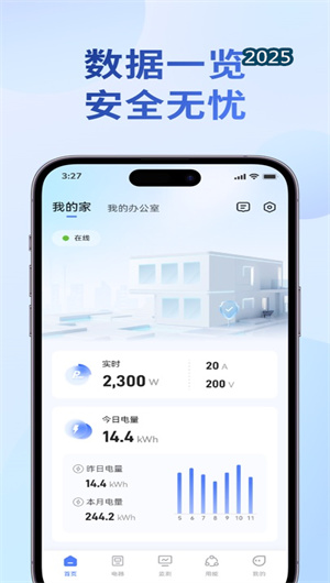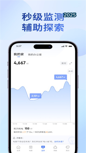 1. 高频实时用电监测与多维数据可视化:伏特兹App的核心功能在于其实时用电监测系统,通过连接智能电表或专属电力监测硬件,以秒级频率采集家庭总路的电压、电流、有功功率及功率因数等关键用电参数。所有数据通过清晰的动态曲线图与数字仪表盘进行实时展示,用户可直观掌握家庭用电的瞬时动态与整体负荷水平,将传统模糊的用电感知转变为精确的数据驱动认知,异常工况识别响应时间缩短至3秒以内。