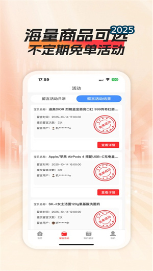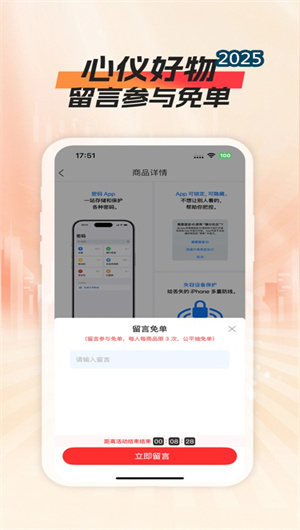 平台的特色留言参与功能允许用户对心仪商品提交免单申请,每人每款商品限3次留言的设计既保证了用户参与机会,又确保了活动公平性。用户通过留言板功能表达对商品的期待或使用场景,即可获得免单资格。系统采用透明的随机抽取算法,所有参与记录和抽奖过程都可追溯,完全透明无套路,这种设计显著提升了用户的参与感和信任度,让免单活动更具公信力。