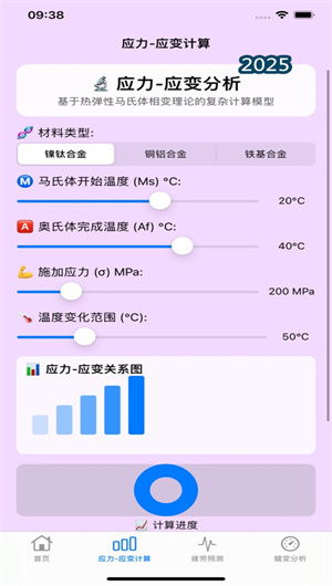 本软件提供专业的应力-应变分析功能,能够计算材料在不同温度和应力条件下的应变响应。通过内置的本构关系模型,软件可以准确描述材料的超弹性行为和形状记忆效应。采用多级加载算法,支持复杂载荷路径下的力学性能预测。软件集成了温度场耦合分析模块,可模拟温度变化对材料力学行为的影响。这些功能使得研究人员能够深入理解材料的相变机理和力学特性,为材料设计和应用提供可靠的理论依据。