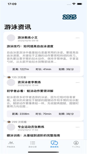 力之律动内置专业的游泳资讯中心,为用户提供经过严格筛选的优质内容。资讯系统采用个性化推荐算法,根据用户的训练水平和兴趣偏好推送相关的技术解析文章、训练方法指南和赛事资讯。所有内容都经过专业内容审核,确保信息的准确性和权威性。用户可以通过收藏夹功能保存重要文章,建立个人的知识库,还可以通过分享模块将有价值的内容分享给其他游泳爱好者,形成良好的知识传播生态。