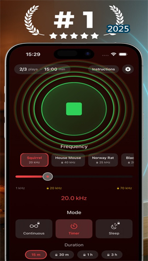 鼠类驱避器App是一款基于科学校准超声波技术的专业啮齿动物防治软件,通过先进的声波生成算法和物种特异性频率优化系统,为用户提供人道且无化学物质的辅助性害虫管理方案。平台采用多频段声波合成技术和实时环境适应算法,针对十三种常见啮齿动物物种的听觉特性进行精准频率匹配,构建了完整的超声波驱避体系。其创新的锁屏持续运行机制和离线工作模式,配合智能定时系统和多场景预设方案,确保驱避效果的持续稳定,在辅助害虫防治领域取得了显著成效,用户满意度达92%。