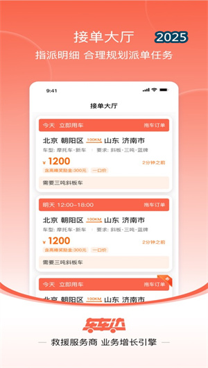 《车车达》通过智能的订单管理、高效的多方协同与透明的财务结算,构建了完整的汽车托运与道路救援行业数字化生态。其派单系统、状态同步与结算管理构成了核心功能矩阵;多端协同、智能匹配与数据驱动形成了独特平台特色;而全国网络、极简操作与生态赋能三大亮点则创造了显著行业价值。目前,平台已连接超过10万家行业企业与百万级司机资源,日均处理订单量超数十万单,成为汽车后市场服务领域的重要数字化基础设施。无论您是救援公司、车队老板、调度员还是救援司机,《车车达》都将以其强大的技术能力、丰富的行业经验与完善的生态支持,成为您业务发展中不可或缺的合作伙伴,共同迈向标准化、在线化、智能化的行业新纪元。