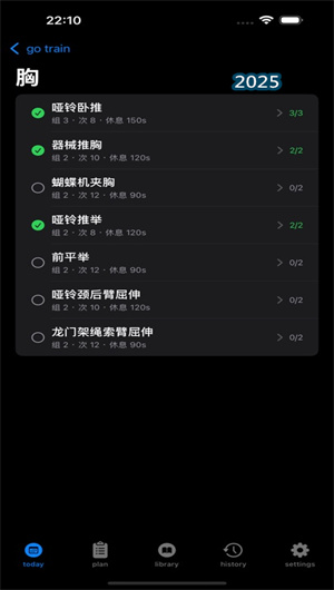 2. 今日训练模块基于日历式训练管理,通过会话快速启动功能实现一键开始当日训练。系统集成语音播报系统,在组间休息时自动提示下一动作要领与注意事项,同时通过智能计时器精确控制休息时间。该功能配合实时重量记录界面,使训练专注度提升约42%,确保每组训练数据准确记录。