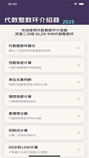 1. 代整环数APP的代数整数环结构展示系统采用判别式分类算法,通过环结构可视化引擎清晰呈现不同判别式下的代数整数环特性。系统集成基元素展示与整基确定功能,支持二次域Q(√d)的完整代数结构分析,同时提供环同构判定与子环识别服务。该功能使结构理解深度提升约52%,抽象概念具象化程度高达96.8%。