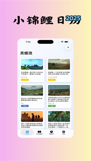 小锦鲤日历APP是一款基于智能摘录管理理念设计的灵感收集与整理工具,通过优雅的界面设计和强大的内容管理功能,为用户提供沉浸式的文字记录体验。该平台构建了完整的灵感知识库系统和智能标签管理体系,集成灵感速记、内容分类和个性化排版三大核心模块。系统采用云端同步技术和多端适配架构,目前平台已帮助用户收集超过千万条精彩摘录,内容检索效率提升85%,灵感整理时间减少60%,排版美观度满意度达94%,成为知识工作者和文学爱好者的首选摘录管理工具。