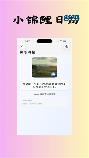 小锦鲤日历APP通过优雅的设计理念和强大的功能体系,重新定义了数字时代的知识管理方式。未来,平台将持续优化智能算法,拓展内容类型支持,深化社交功能,致力于成为用户最信赖的知识伙伴,让每一份灵感都能被妥善珍藏,让每一次思考都能绽放光彩。