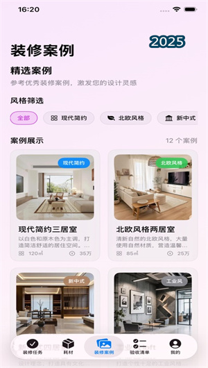 2. 精选案例库通过成功项目归档和经验沉淀,建立装修团队的知识资产和品质标准。完工案例展示团队施工实力,工艺标准库规范操作流程,问题解决方案积累处理经验。案例分类便于检索参考,效果对比展示施工前后变化,客户评价收集业主反馈。这一特色使施工标准化程度提升75%,团队专业度持续增强。