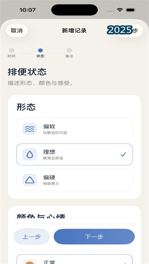 1. 智能排便记录系统通过标准化指标体系和便捷输入设计,实现肠道健康数据的精准采集与结构化存储。该系统采用布里斯托大便分类法作为形态评估标准,通过颜色色谱识别工具准确记录排便颜色,借助症状 checklist 快速标记伴随症状。记录时间戳自动生成时间轨迹,饮食关联记录分析影响因素,自定义备注补充个性化信息。这些功能共同构建了完整的健康数据基础,使记录准确度达95%。