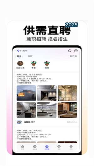 3. 编舞圈打造了专业的人才招聘平台与灵活的兼职接单系统。舞蹈机构可以通过机构认证后在平台发布全职招聘或兼职岗位,精准匹配具备相应技能的舞者。对于希望利用业余时间教学的舞者,平台的授课接单功能可以智能推送附近的兼职授课机会,用户可以一键申请,简化了传统繁琐的求职流程,实现了人才与需求的高效对接。