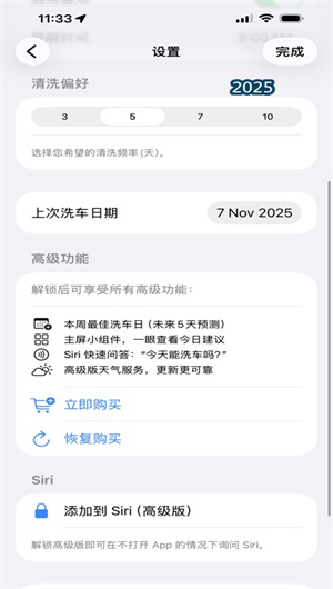 2. 软件致力于打造个性化配置体验与深度的数据洞察报告。用户可根据自身对车辆洁净度的要求,在个性化设置中调整洗车阈值(如:可接受轻度浮尘)。系统将基于此偏好,为用户生成定制化的洗车方案。同时,平台会定期生成养护报告,总结周期内的洗车次数、因规避不良天气而节省的费用等数据洞察,让用户清晰感知智能养护带来的价值。