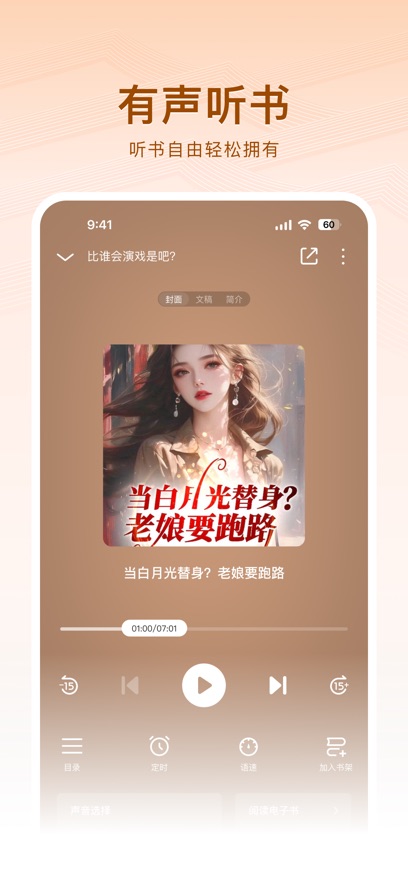 先进的AI智能语音系统提供男女声、多年龄段等多样化音色选择,情感合成技术精准演绎作品中的情绪变化,营造拟真播讲体验。听书设置面板支持语速精细调节、定时关闭和背景播放,场景自适应系统根据通勤、睡前等不同使用场景智能优化听书参数。离线下载功能允许用户缓存音频内容,这些听书功能使用户日均听书时长提升至90分钟,真正实现了阅读场景的全覆盖。