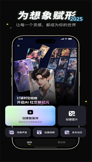 1. 智能体工坊:从描述到创造的AI生命体生成:元声App的核心功能是其强大而直观的智能体创建系统。在 “创造你的AI宇宙” 模块中,用户无需编程知识,仅需通过自然语言描述,定义目标AI智能体的身份背景(如“文艺复兴时期的博学家”)、性格特征(如“幽默且富有哲思”)、知识领域(如“精通量子物理与古典诗词”)及对话风格。平台后台的智能体生成引擎将综合分析这些指令,通过参数化性格建模与知识库定向索引,在数分钟内“孵化”出一个独一无二、个性鲜明的可交互智能体。无论是历史名人克隆、电影角色复现还是完全原创人物,皆可一键生成,用户调研显示其智能体拟真度满意度达 82%。