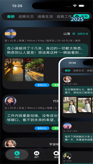 1. 结构化“生活困境”发布与多维支持系统:陌桃App的核心功能是其精心设计的 “破茧日记” 发布模块。用户在此不仅可以自由书写当前的生活困局(如职业倦怠、情感困境、生活习惯顽疾、地域迁徙焦虑等),更可以通过结构化标签(如“35岁转型”、“社交恐惧”、“城市逃离计划”)对困境进行分类,并附加期望改变方向与需要帮助类型(如“需要经验分享”、“需要监督打卡”、“需要精神鼓励”)。每条发布都会进入相应的话题社区,其他用户可通过文字鼓励、语音分享、实用资源链接或发起一对一深度聊等多种形式提供支持,形成以具体问题为中心的微型支持社群。平台数据显示,超过 68% 的深度求助帖在24小时内获得了超过10条实质性帮助回复。