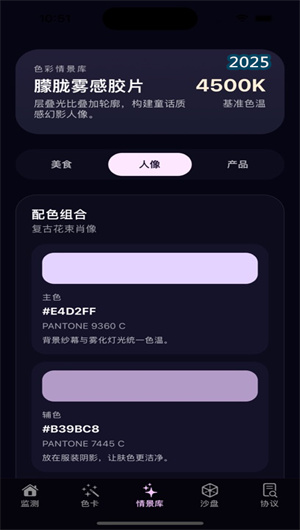 3. 专业色彩情景库与一体化色彩管理工具:为保障色彩创作的精准与高效,应用内置了庞大的 “专业级色彩情景库” 。该库根据不同拍摄场景(如“温暖家居”、“冷酷科技”、“清新自然”)预置了最佳的色彩搭配组合与相应的白平衡预设。同时,应用提供强大的一体化色彩管理工具集,包括高精度屏幕取色器(可从现实物体或参考图中提取颜色值)、自定义色卡生成器(用于现场色彩校准)以及色温对比工具。这些工具帮助用户在前期就统一色彩语言,确保后期调色的一致性。