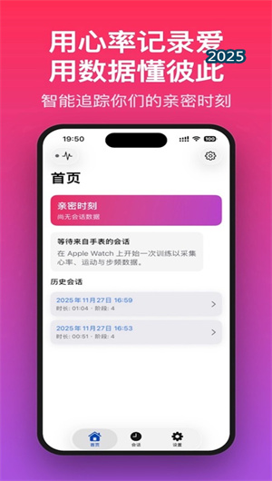 1. 多维度生理数据同步采集与智能阶段识别:本应用的核心功能是依托Apple Watch高性能光学心率传感器,实现实时心率变异性监测。在伴侣互动过程中,应用通过活动强度算法持续捕捉双方的心率变化曲线,并运用模式识别引擎自动划分出互动预热期、情感高峰期与生理恢复期三大核心阶段。系统不仅记录各阶段的平均心率与峰值心率,还通过协同生理唤醒分析,计算双方心率的同步性指数,为理解彼此的情感共鸣提供量化参考。每次活动结束后,系统自动生成一份包含阶段时长分布、卡路里消耗估算及运动强度评分的交互报告。