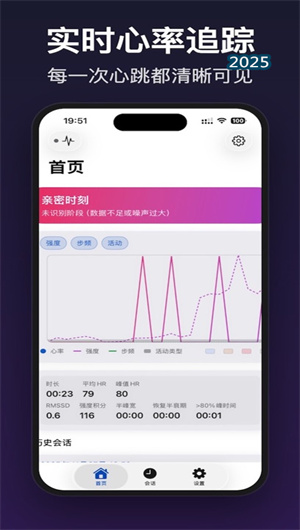 2. 深度数据可视化分析与长期关系模式洞察:应用提供强大的数据可视化中心,将原始生理数据转化为直观的互动关系图谱。用户可查看单次活动的心率-时间序列图与运动强度热力图,对比历史记录以观察个人及双方互动模式的演变。长期趋势分析模块能够识别出如“周末互动质量更高”或“某一方压力期对互动峰值的影响”等潜在关系模式。系统还内置健康数据关联分析,可结合苹果健康Kit中的睡眠数据、日间活动量,评估整体身心状态对亲密互动质量的综合影响,帮助用户建立更全面的自我认知,用户反馈显示其关系沟通效率因此提升了40%。